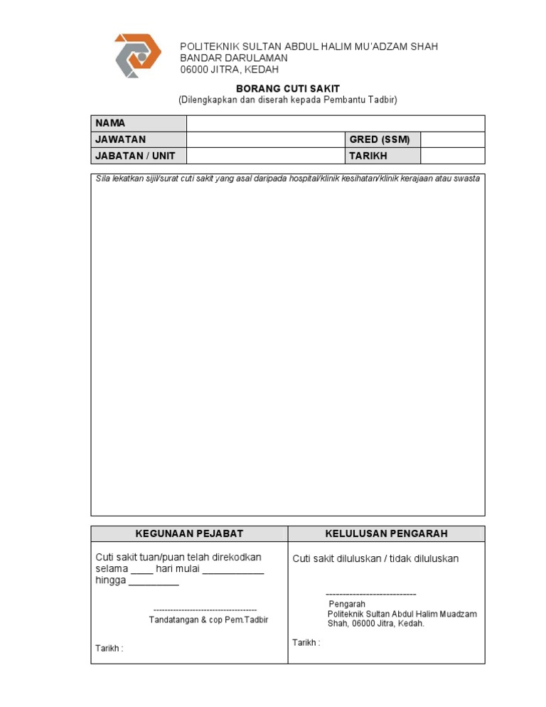 Exclusive Sijil Cuti Sakit Pdf Download Peatix